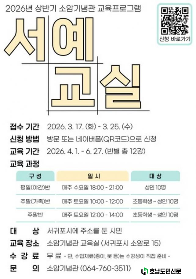 ݱ 4 6 3(ݺ 12) Ͽ Ǹ, ڼ Ҿϱ Ȩ(https://culture.seogwipo.go.kr/soam) Ȯ ִ.